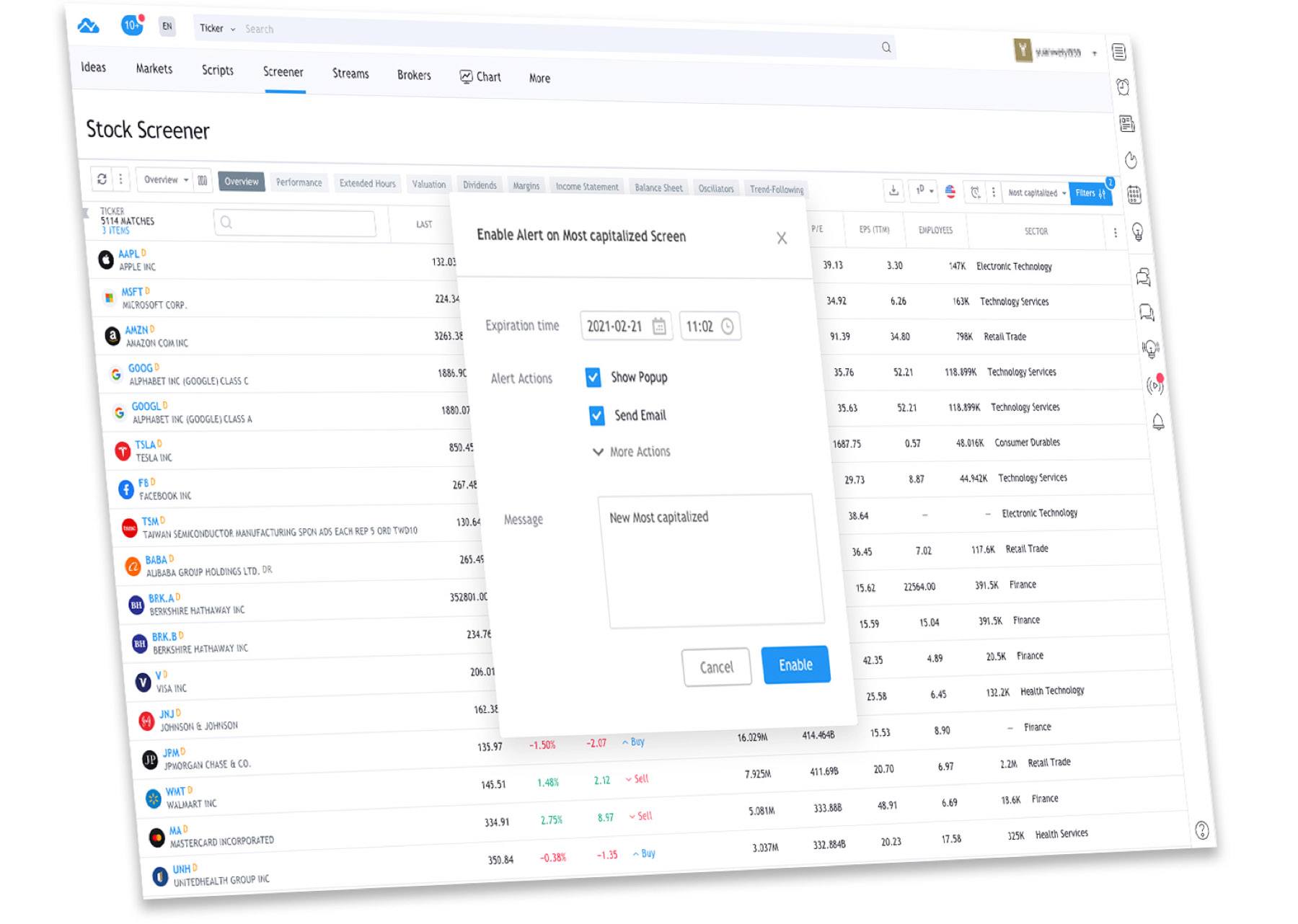 Create your own pointers or trading programs with built-in Pine scripts. With “HTML5 Canvas” technology, you can trade on our platform with the best performance, flexibility, and the perfect chart overview on any device.